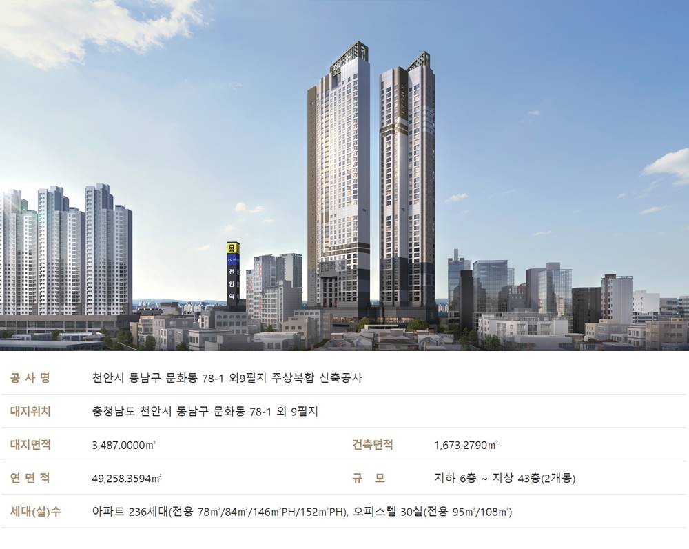 아파트 1,032세대와 오피스텔 302실, 총 1,334세대 조성